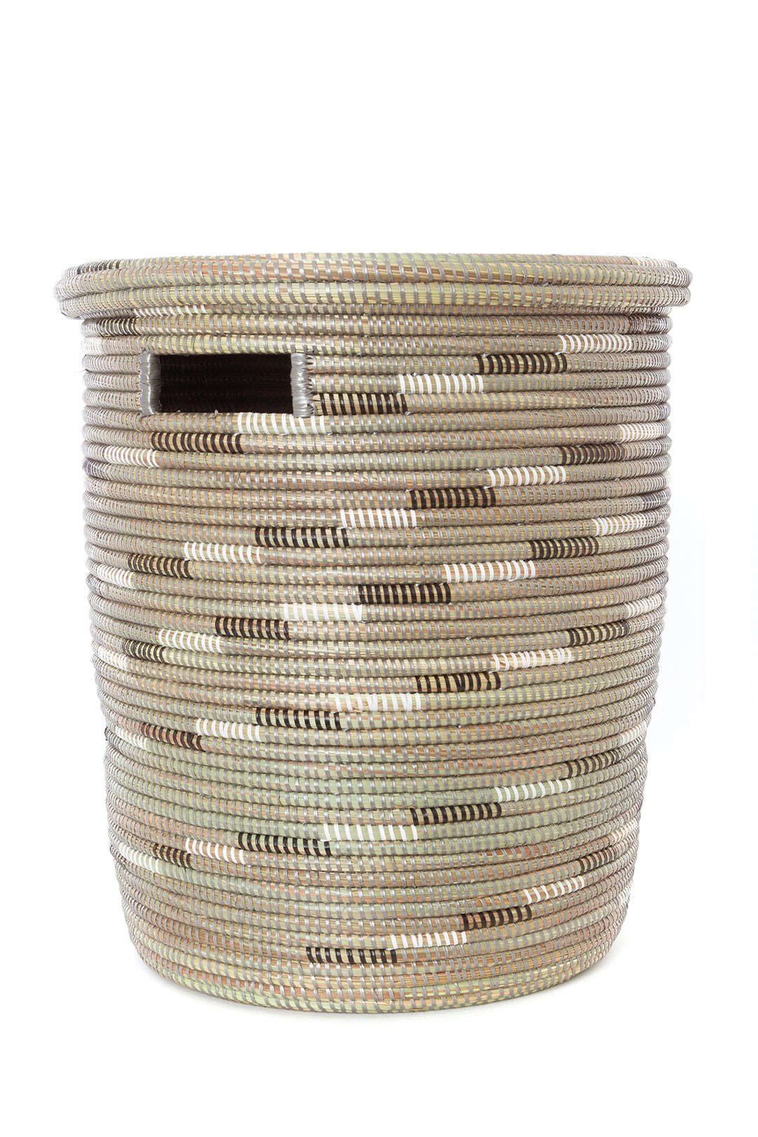 Wolof women in the West African nation of Senegal update traditional coil weaving methods by enlivening natural grass baskets with colorful strips of plastic salvaged from a mat factory. Cattails grow abundantly in rural Senegal, so women can earn a sustainable income from basket weaving while enriching homes around the world with modern African craftsmanship.