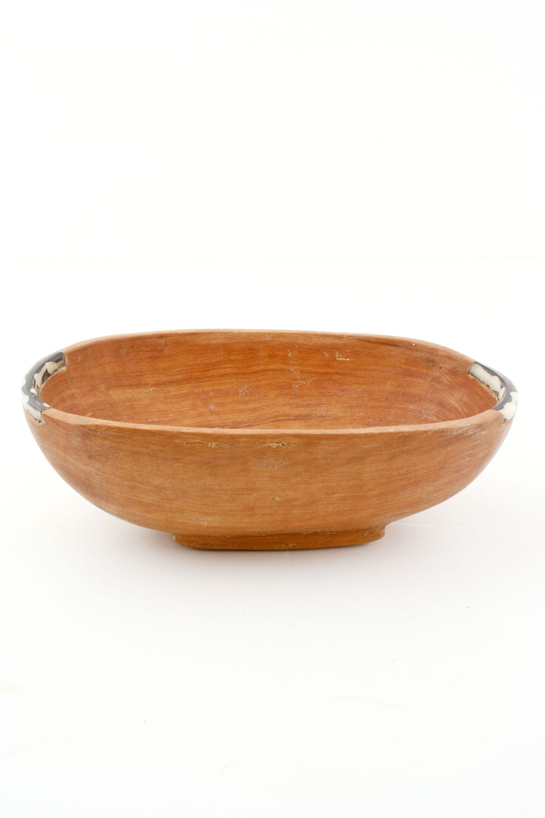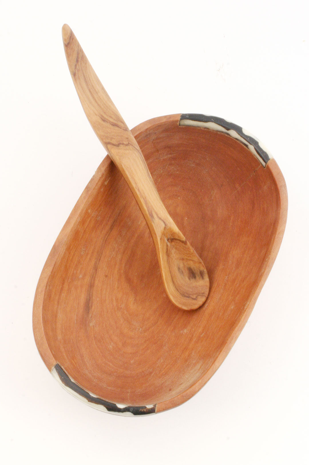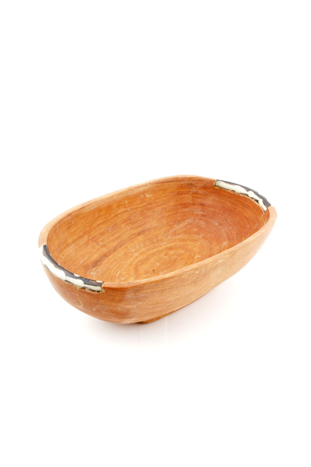 Small Shallow Oval Olive Wood Bowl with Batik Bone