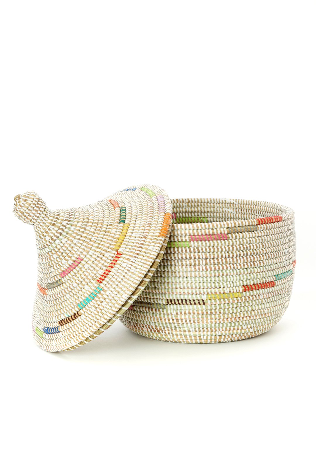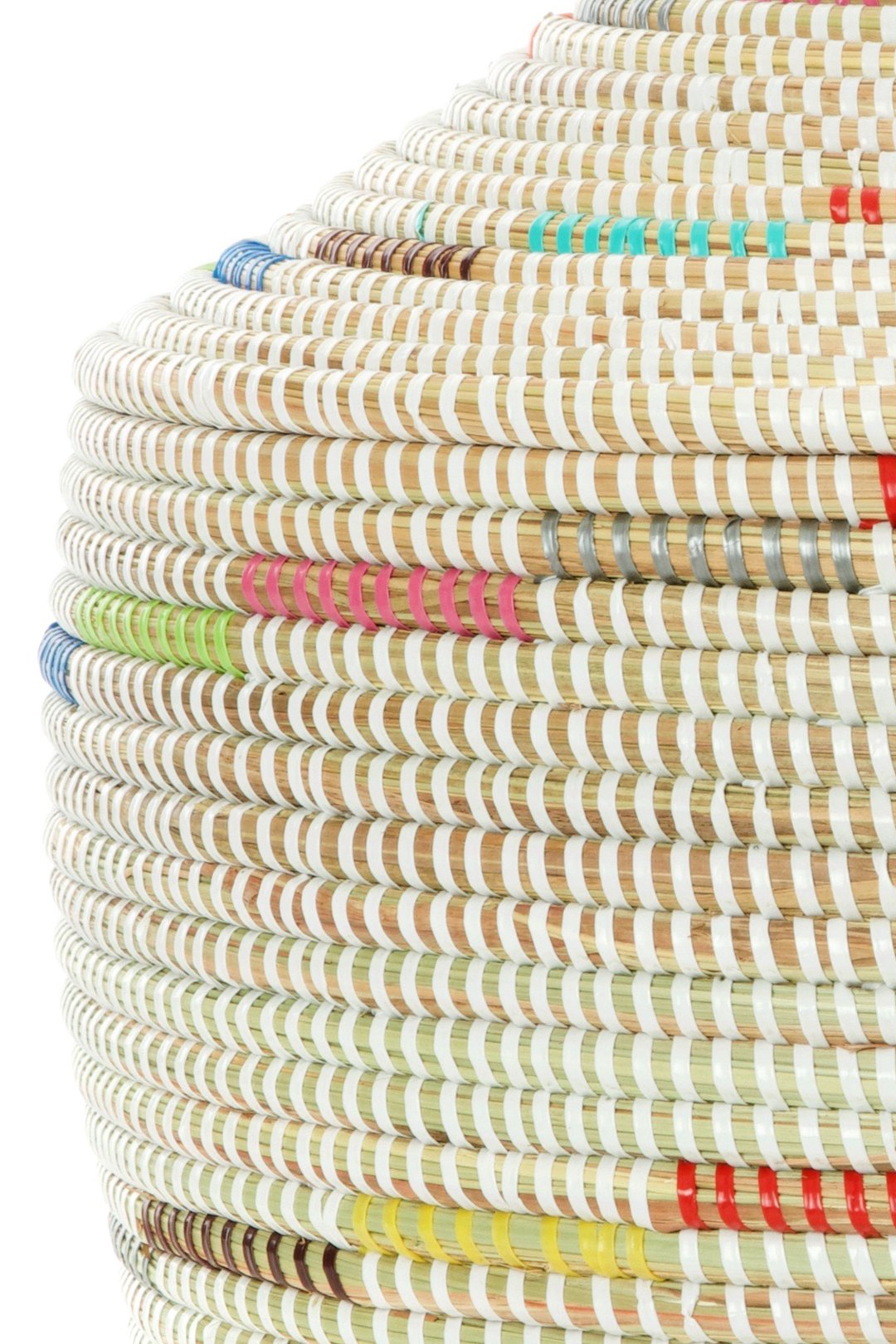 A network of rural Wolof women in nine Senegalese villages are working together to create beautiful handcrafted baskets for export. Using locally harvested cattail stalks and strips of plastic used to make prayer mats, the women bring supplemental income to their households by weaving baskets between their daily duties.