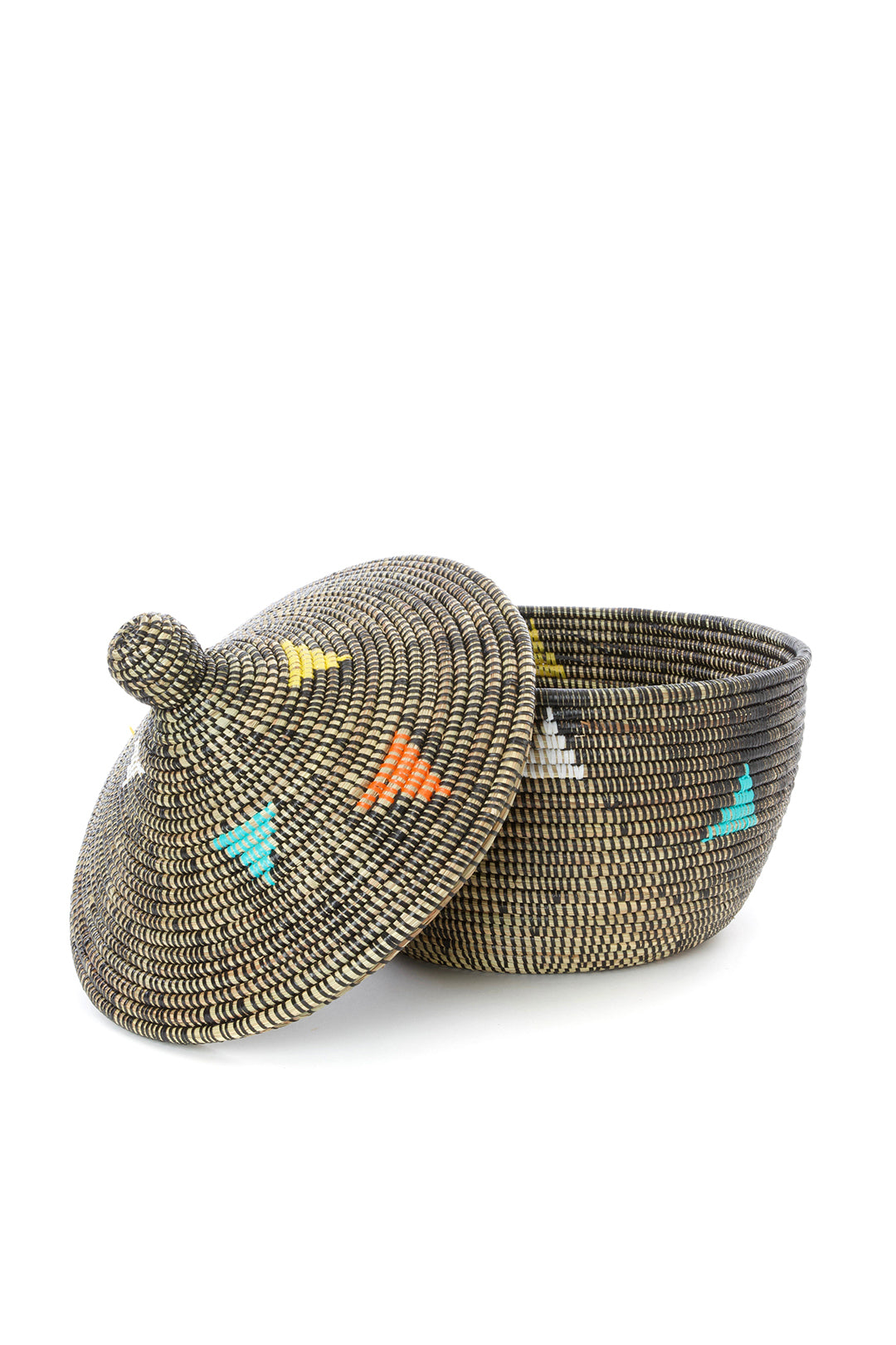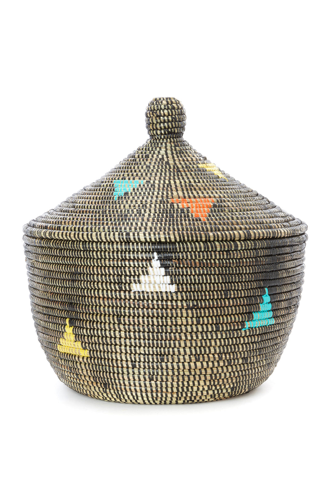 This beautiful basket is handcrafted by rural Wolof women in Senegal from cattail stalks and strips of salvaged plastic. With a snug fitting peaked lid, our warming baskets are a perfect way to present baked goods to loved ones, or to create a memorable gift basket of your own design.