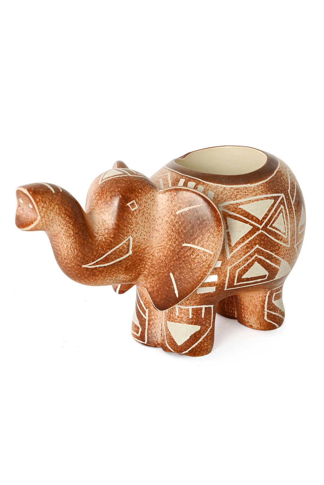 Kenyan artisans hand carve soapstone to create this unique elephant candle holder, then add a softly dyed finish and etched geometric details. Sized to hold a tea light candle, the candle holder adds subtle light wherever it is displayed.