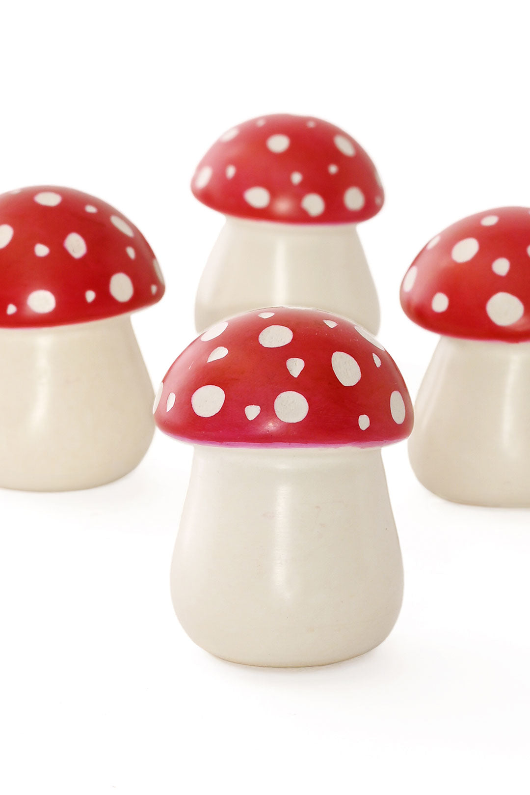 These mushrooms are absolutely fantastic! Artisans in Kenya hand carve each small sculpture from soft soapstone, add a dyed red cap, and then etch in iconic dots. Customers will love finding places for these little treasures to pop up unexpectedly.