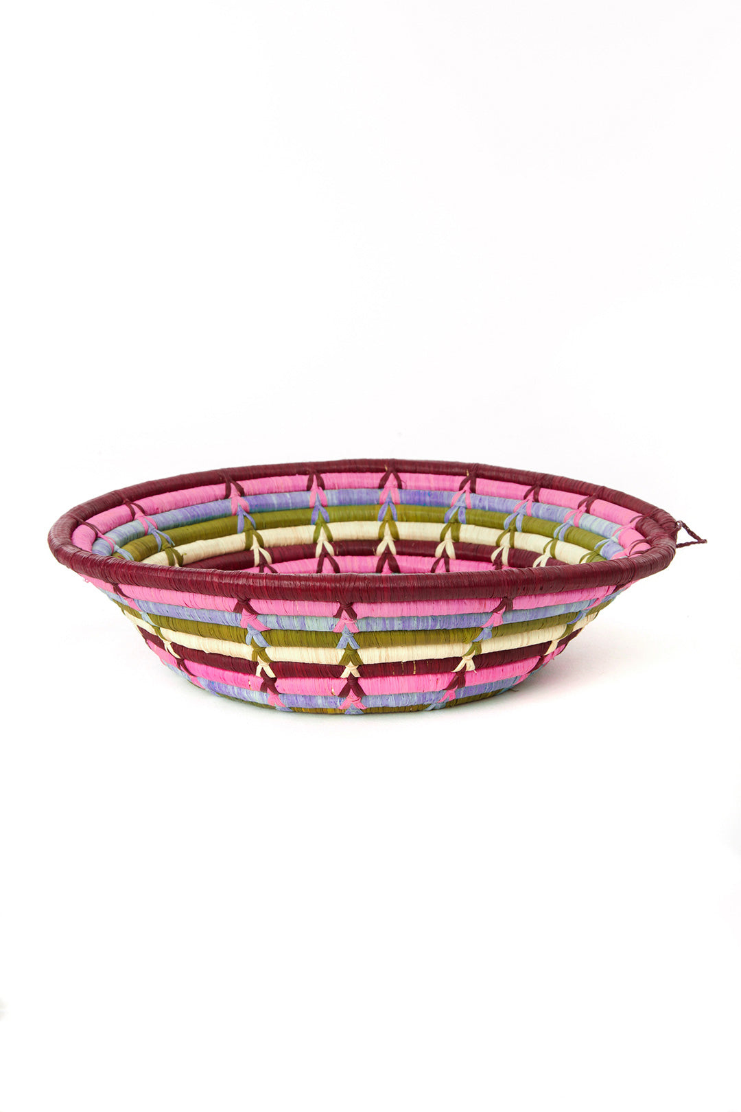Skilled artisans in Uganda hand weave dyed strips of raffia palm and plant stalks to create these gorgeous decorative baskets. Whether displayed on the wall or put to use on the tabletop, each handmade basket serves beautifully.