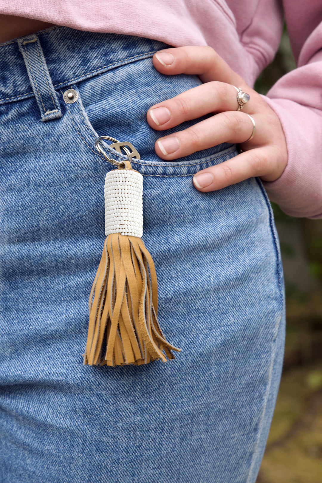 Wayfarer Tassel Key Ring with White Beads