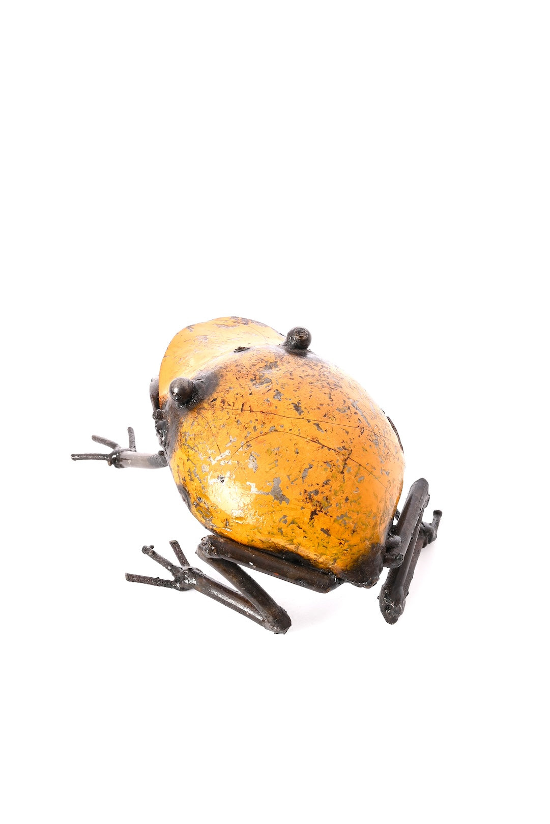 Zimbabwean sculptors weld recycled metal to create this playful yellow frog sculpture. Each sculpture is finished with varnish to protect against the elements.